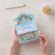 Un jardín de ensueño está rodeado de cosmos y flores silvestres en un soleado día de verano con nubes esponjosas en el cielo azul para personalizar una tarjeta de invitación.