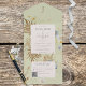 DISPONIBLE CON O SIN CÓDIGO QR PARA ESCALAR. Este diseño presenta un delicado campo y flores y helechos silvestres sobre un suave fondo verde sabio. Un monograma completa el aspecto sencillo pero elegante de todo esto en una sola invitación. Agregue una dirección URL de código QR a su invitación para que los visitantes puedan acceder rápidamente a su sitio Web boda para obtener detalles, direcciones, opciones de menú y más, o agregue la dirección URL Web del Registro de regalos. Las invitaciones todo en uno personalizadas son una combinación única de una invitación personalizado bien impresa y una postal RSVP fácil de desgarrar. ¡Y son tan fáciles de usar! Simplemente se pliega, después sella la solapa de atrás con los tres pegatinas claros incluidos y el correo. Y cuando sus invitados reciben la invitación de su personalizado, ¡simplemente sacan la tarjeta RSVP perforada y la envían de vuelta al correo! Esta tarjeta es parte de la suite de tarjetas Wildflowers on Dusty Blue Boda creada por Simply Farmhouse Press.