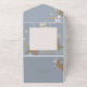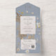 Invitación Todo En Uno Flores silvestres rusas Monograma Dusty Azul Códig