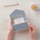 Captura el encanto de la naturaleza con nuestra rústica invitación a bodas boho, con delicados grupos de flores silvestres secas, prensadas y helechos dispuestos sobre un polvoriento fondo azul. Las cajas de texto de color crema ofrecen un contraste suave para tus detalles, enmarcadas por la belleza orgánica de las texturas botánicas. Con las iniciales de la pareja elegantemente exhibidas en la parte superior, este diseño aporta un ambiente romántico y terrenal a tu día especial, perfecto para bodas con un toque natural y caprichoso. Creado por Simply Farmhouse Press.