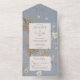 Invitación Todo En Uno Flores silvestres rusticas Monograma azul turbio n