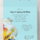 Invitación de flores tropicales todo en uno para una ceremonia de renovación de juramento, o boda, u otro evento. Colores azul y amarillo acuático con flores hawaianas en el interior. Grandes flores blancas de plumería, hibiscos rosas y pájaro amarillo del paraíso hacen un diseño de bonito dentro de la tarjeta. La carta de invitación y respuesta de una sola pieza se abre con texto dentro de la solapa, en el centro y en la parte inferior donde se desplaza la tarjeta RSVP. Los clientes pueden enviar fácilmente la respuesta al correo como una postal. También se toma el franqueo de la postal. El exterior de esta tarjeta es amarillo y todos los tipos de letra impresos a mano son de color gris oscuro. Las áreas se proporcionan para incluir direcciones: dirección de retorno, dirección de correo y dirección de retorno de RSVP. Todo el texto es fácil de cambiar o borrar según sea necesario.