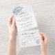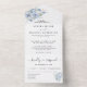 Invitación Todo En Uno flores y hojas acuarela azul polvoriento rústico