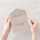 Una invitación a bodas de boho con champán, marina, palet de color rosa rubor y una simple y romántica hoja de follaje y una filial de arte. Un lugar perfecto para los bodas con paleta de champán, todo ello en una sola invitación, es una invitación única que hace una gran presentación a su gran día.