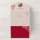 Esta invitación de boda única, roja y sonrosada, todo en uno, está diseñada para ser ecológica, elegante y económica. El formato de estilo sobre incluye todo en una sola pieza, lo que le ahorra dinero al eliminar la necesidad de tarjetas de respuesta adicionales, menús o inclusiones adicionales.