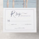 Modern all en una invitación a la boda incluye su foto favorita de la pareja con un overlay blanco transparente como telón de fondo para sus importantes detalles de la invitación, incluyendo sus nombres, fecha del boda, hora y ubicación. Sus invitados simplemente se desgarran y envían por correo el RSVP que ha sido sellado y preimpreso con su dirección de retorno. El exterior de la tarjeta se coordina en azul polvoriento con tipografía blanca.