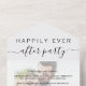 Anuncio de boda o pequeña boda moderna y recepción todo en una invitación para anunciar su matrimonio a familiares y amigos e invitarlos a una recepción o fiesta después de la boda. Su anuncio y invitación personalizados superponen su foto del día de la boda, y "Fiesta de felices para siempre" está escrito en una mezcla de tipografía simple y una escritura chic con florituras. Una tarjeta postal de respuesta desgarrable proporciona una respuesta conveniente y sin sobres de sus invitados.