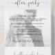 Anuncio de boda íntima o de matrimonio pequeño y recepción, todo en una invitación para anunciar su matrimonio a familiares y amigos e invitarlos a una fiesta de celebración posterior a la boda. "Fiesta Felices para Siempre" está escrito en una mezcla de tipografía simple y una hermosa letra con florituras. Su foto en blanco y negro se superpone con su anuncio de boda íntima/matrimonio y la invitación a la recepción. Una tarjeta postal RSVP desprendible proporciona una respuesta conveniente, ecológica y sin sobres de sus invitados. Su foto se convierte en una imagen en blanco y negro mediante un filtro; si no lo desea, ingrese a la herramienta de diseño, haga clic en su foto y apague el filtro a la derecha.