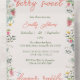 Presentamos nuestro encantador diseño de una invitación para un fiesta de ducha de bebé! Si solicita esta invitación, recibirá una tarjeta de raffile de pañales adicional para que los huéspedes jueguen con usted. Disfrute de la dulzura de la primavera con nuestro encantador diseño de flores de flores de fresa y flores de agua de fresa, donde las delicadas flores se entrelazan con la exuberante vegetación. Los vivos tonos de fresas y hojas verdes crean una atmósfera caprichosa, evocando la alegría y la anticipación de nuevos comienzos. ¡Únete a nosotros para celebrar a la futura mamita y su dulce llegada!