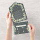 Invitación Todo En Uno Fresa verde gris + Boda eucalipto