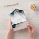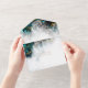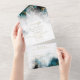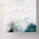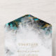 Invitación tríptica de recepción de boda y RSVP todo en uno: impresionante geoda de cristal de piedra preciosa de apatita teal acentuada con vetas de pepita de oro marmoleado brillante y cristal de cuarzo - reverso coordinado. Diseño original creado para BarefootBride™ por © WhimsicalArtwork™ - Esta es parte de una suite de papelería de boda completa con papelería de boda, baby shower y otros eventos.