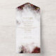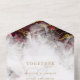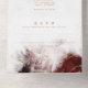 Invitación tríptica de recepción de boda y RSVP todo en uno: geoda de cristal de piedra preciosa de rubí rojo intenso acentuada con vetas de pepita de oro jaspeado brillante y cristal de cuarzo - reverso coordinado. Diseño original creado para BarefootBride™ por © WhimsicalArtwork™ - Esta es parte de una suite de papelería de boda completa con papelería de boda, baby shower y otros eventos.