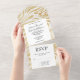 Invitación Todo En Uno Glam Gold White Abstract Swirls Boda
