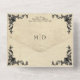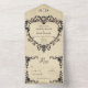 Invitación Todo En Uno Gothic Black Tan Parchment Filigree Heart Wedding