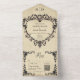 Invitación Todo En Uno Gothic Black Tan Parchment Filigree Heart Wedding
