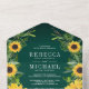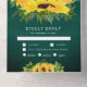 Sorprenda a sus huéspedes con esta elegante invitación a una boda de girasol con hermosos girasoles y una tarjeta postal RSVP desmontable. Simplemente agregue los detalles de su evento en esta plantilla fácil de usar para convertirla en una invitación única.