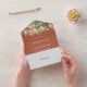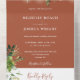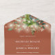 Esta invitación a la boda se lleva a cabo en una sola terracota y cuenta con vegetación botánica y luces de cuerdas de bonito. La invitación incluye una tarjeta RSVP perforada que puede ser dirigida individualmente o dejada en blanco para que pueda escribir a mano los detalles de la dirección de su invitado. Diseñado por Thisisnotme©