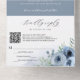 Invitación Todo En Uno Guión caprichoso Floral Dusty azul QR Boda de códi