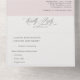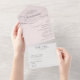 Una elegante invitación de quinceañera en rosa suave, con una redacción tradicional con un elegante encabezado de tipografía caligráfica. Esta invitación sustentable "todo en uno" te ahorraría dinero, no hay necesidad de incluir sobres RSVP, tus invitados desgarrarán el último panel y te lo enviarán de vuelta como postal. Si necesitas algún cambio, estoy feliz de ayudar a Necesita ayuda en español. Feliz de ayuda