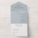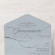 Una elegante invitación a la quinceañera en azul polvoriento, con una redacción tradicional con un elegante encabezado de tipografía caligráfica. Esta invitación sustentable "todo en uno" te ahorraría dinero, no hay necesidad de incluir sobres RSVP, tus invitados desgarrarán el último panel y te lo enviarán de vuelta como postal. Si necesitas algún cambio, estoy feliz de ayudar a Necesita ayuda en español. Feliz de ayuda