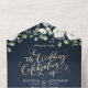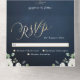 Invitación Todo En Uno Guión dorado moderno boda floral azul marino blanc