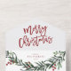 Modern Red Merry Christmas Script GreeneryDiseñado por Stacey Meacham