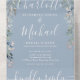Invitación Todo En Uno Guión floral Código QR Boda azul turbio