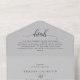 Esta invitación "todo en uno" presenta un fondo gris suave emparejado con un tipo de letra de guión moderno, exuberante elegancia minimalista. El diseño claro y fácil de leer garantiza que sus huéspedes reciban toda la información esencial para su celebración boda. Más que sólo una invitación, este versátil diseño le permite personalizar los detalles de su ceremonia, recepción, RSVP, y cualquier información adicional que desee compartir. Con su estilo atemporal y su suave matiz, esta invitación completa perfectamente una variedad de temas bodas, desde románticos y modas hasta modernos y sofisticados.