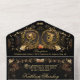 Un hermoso diseño floral de color negro y dorado con esqueletos de novia y novio para ese hermoso estilo de Halloween. Este diseño está disponible en otros tamaños, consulte la colección para más información... Este diseño está configurado con un MENU RSVP, vea la colección para más opciones...
