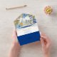 Invitación Todo En Uno Hoja Tropical Real Azul de Oro