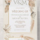 Elegante Terracota, Crema y Hojas de Palma Secas Khaki, Grasa Pampas y orquídeas florales todo en una sola invitación a Boda que incluye información boda y postal RSVP que sus invitados desgarran y mandan. No se necesitan sobres. ¡Ideal para un boda boho, tropical, jungla, desierto o de colores neutros!