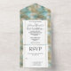 Invitación Todo En Uno Hojas tropicales blancas de oro Aqua