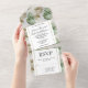 Invitación Todo En Uno Hojas tropicales blancas y doradas