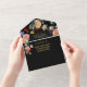 Boda elegante y sombrío inspirada en Rembrandt con flores y pan de oro en las invitaciones de boda que incluyen la información de la boda y la tarjeta postal de respuesta que sus invitados arrancan y envían. No se necesitan sobres. Estas presentan flores de pintura al óleo de los Maestros holandeses, iniciales de la pareja y pan de oro sobre un fondo oscuro. Presenta flores y capullos grandes y audaces. Ideal para una boda elegante por la noche. ¡Artículos coincidentes en este diseño!