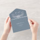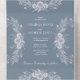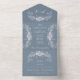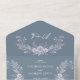 Invitación a la boda de estilo francés elegante en tonos blancos y azules "Todo en uno"