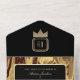 Haz una declaración audaz con esta invitación de matrimonio de oro y negro de mármol de lujo. Con un elegante patrón de mármol giratorio, sofisticados acentos dorados y un monograma de personalizable, este diseño todo en uno es perfecto para bodas glamorosos, formales o modernos. Personalice sus detalles, utilice el código QR para obtener RSVPs fáciles e impresione a sus huéspedes con un estilo refinado.