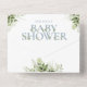 A stylish all-in-one baby shower invitation featuring elegant dusty blue floral greenery typography. Add your special celebration details to create the perfect invitation. It includes a diaper raffle or other cute baby shower request card. Designed by Thisisnotme©