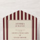 This ivory and burgundy stripe all in one wedding invitation features a bold striped border with a retro-inspired aesthetic. The contrast between soft ivory and rich burgundy creates a timeless, old-money look with a modern vintage edge. Designed to present key wedding details and RSVP in one cohesive layout, it’s ideal for couples drawn to classic typography, statement borders, and retro elegance. A stylish choice for formal, traditional, or fashion-forward weddings with a nostalgic yet polished feel.