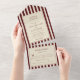 Invitación Todo En Uno Ivory & Burgundy Stripes Border Retro Wedding