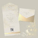 Invitación Todo En Uno Ivory Gold Floral QR Code Wedding