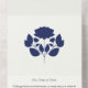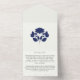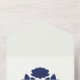 El diseño forma parte de una suite de invitados a la boda, que refleja la elegancia y el romanticismo gracias a sus motivos florales y a su refinada paleta de colores. La forma del arco puede simbolizar una puerta de entrada o entrada, posiblemente representando el comienzo de un nuevo viaje juntos para la pareja. Los elementos florales pueden simbolizar el crecimiento, la belleza y el florecimiento del amor. El color azul oscuro se asocia a menudo con la profundidad, la estabilidad y la tranquilidad, lo que añade una sensación de calma y tradición al diseño.