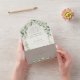 Una invitación de boda combinada y una tarjeta de respuesta sólo para los invitados. Con bayas de nieve pintadas a mano y tallos de eucalipto dispuestos en hermosos elementos botánicos y enmarcada en un fondo interior de color gris y crema. Todo el texto es completamente editable, y los puntos dispersos en la parte delantera y trasera se pueden borrar antes de pedir si lo prefiere. Vea esta colección en mi tienda para ver las versiones de este producto con opciones de texto alternativas, en colores diferentes y para coordinar elementos.