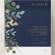 La vegetación Navidad moderna | sello marino y enviar todo en una sola invitación es perfecto para tu simple boda de invierno boho. Diseñado con Relieve metalizado geométrico falso oro y acuarela botánica minimalista con toques de eucalipto verde y winterberry rojo. Todo sobre un fondo azul marino clásico. Estos elementos le confieren un toque moderno y elegante que le confiere un toque de elegancia. Puedes personalizar con tus propias fotos o mantenerlo tal cual. ¡Asegúrate de mirar el resto de la colección para completar tu tema boda!