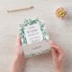 Aprovecha tu estancia con esta elegante invitación de bodas con hermosas hojas y tipografía moderna con postal RSVP desmontable. Simplemente agregue los detalles de su evento en esta plantilla fácil de usar para convertirla en una invitación única.