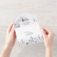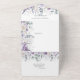 A romantic watercolor arrangement of soft blooms graces this all-in-one wedding invitation with timeless charm. Delicate shades of purple and lavender cascade through the edges, accented by wisps of green foliage and fine golden branches that offer a gentle shimmer. The florals seem to frame an invisible promise at the center, creating a harmonious border that draws the eye inward. With its blend of natural elegance and light painterly texture, the design feels both ethereal and warm—perfectly suited to celebrate love in full bloom. Easy to personalize with your own information.