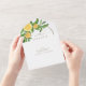Invite a los huéspedes a su boda con esta invitación de personalizable todo en uno. Cuenta con ilustraciones acuáticos de limones, kumquats y vegetación con un acento de arco. Personalice agregando sus propios detalles de boda. Esta invitación a la boda de limón es perfecta para los bodas de verano.