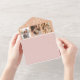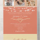 Celebra el amor con nuestra impresionante invitación a la boda todo en uno, mezclando elegancia, moda, boho y modernas vibraciones retro sin problemas. Decorada con tonalidades soñadoras de amarillo, rosa y melocotón, nuestra invitación incluye una romántica cuerda dorada, corazón entrelazado con brillantes luces de cuerda. Voltea hacia atrás para apreciar cuatro momentos preciados de la pareja capturados a tiempo. Personalice con sus propias fotos, comparta su sitio web boda y simplifique los RSVP con un código QR conveniente. Aprovecha el romanticismo eterno y el estilo contemporáneo con cada detalle.