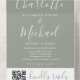 Invitación Todo En Uno Letras de cadena Sage Green Script QR Code Boda