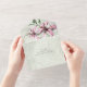 Sumérjase en el encanto de un eterno romance con esta exquisita invitación a una boda todo en uno, adornada con elegantes lirios rosas delicadamente colocados en un entorno verde sabio y angustiado. Diseñada para cautivar el corazón de sus invitados y preparar el escenario para su celebración inolvidable, esta invitación encarna el epítome de la sofisticación y el encanto. Las invitaciones de boda todo en uno son hermosas y prácticas al combinar la invitación de boda con una postal RSVP fácil de quitar perforada. También son rápidos y fáciles de preparar para el correo. Simplemente dirija la invitación, doble el pliegue trasero y selle con los pegatinas claros incluidos. Una vez que sus invitados reciben la invitación, simplemente rompen la tarjeta RSVP perforada y la tiran por correo. La adición del código QR permite a los clientes acceder fácilmente a la página web de su boda para obtener información, incluyendo detalles de recepción y opciones de cena.