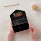Establece el tono para una noche espeluznante con esta invitación temática de jack-o-lantern revueltos todo en uno. ¡Invita a amigos y familiares a venir a pedir dulces contigo!